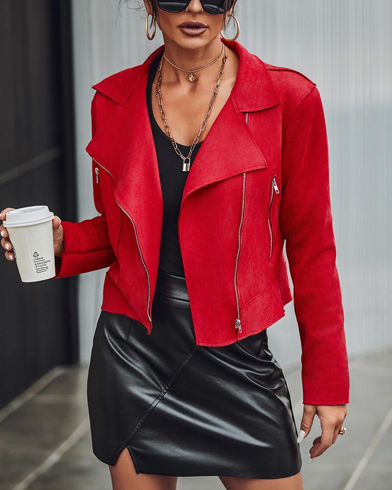 Style:Chic Type:Biker Material:100%Polyester Neckline:Notched Collar Sleeve Style:Long Sleeve Length:Regular Pattern Type:Plain Decoration:Zipper Fit Type:Regular Occasion:Daily Package Include:1*Jacket Fabric Elasticity:Slight Stretch Sheer:No Care Instructions:Hand wash or dry clean