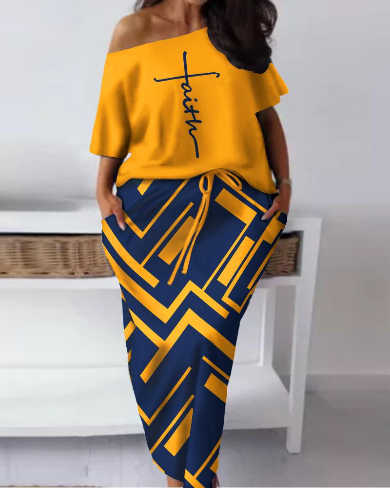 Plus Size Faith Geometric Print Casual Top & Skirt Set