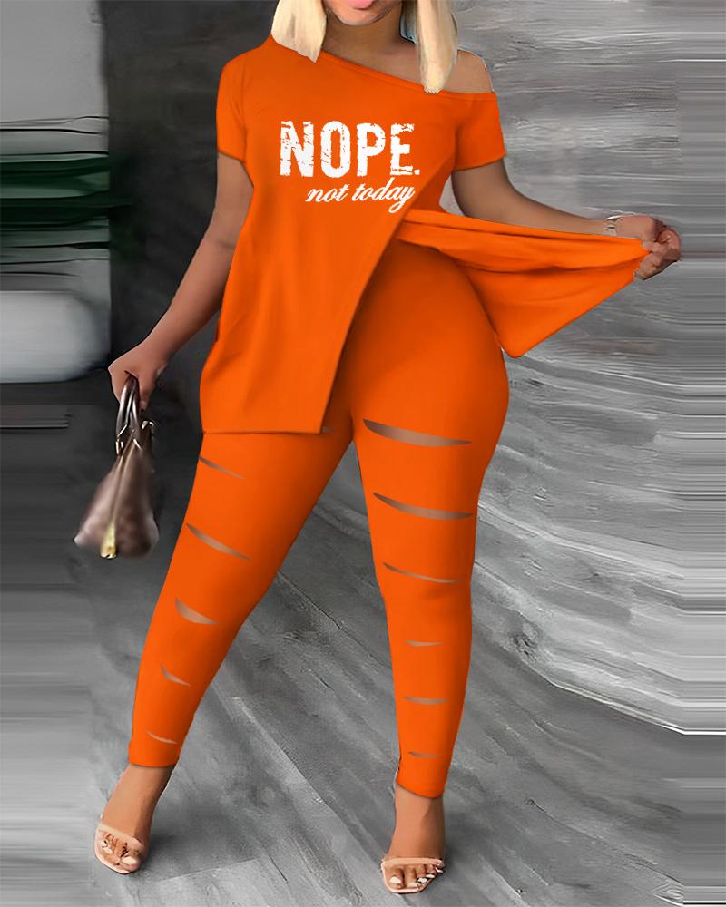 Plus Size Nope Not Today Print Split Hem Top & Ladder Cutout Pants Set