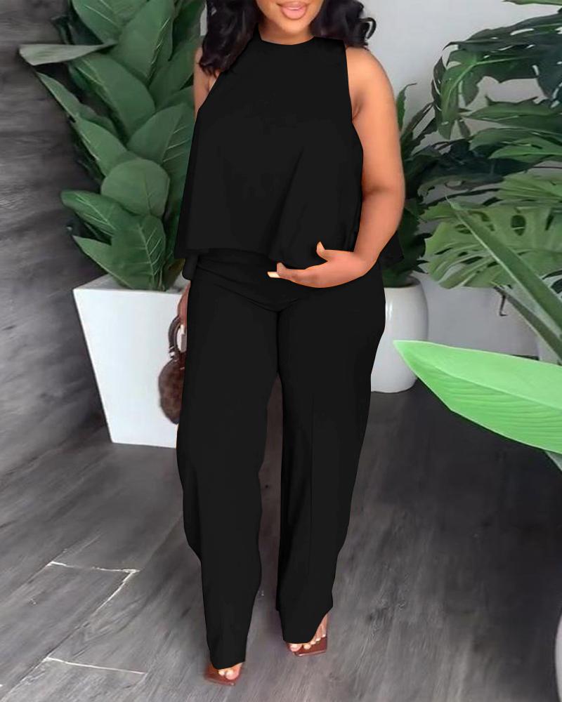 Style:Elegant Type:Pants Sets Material:97%Polyester,3%Spandex Neckline:O-neck Sleeve Style:Sleeveless Length:Long Pattern Type:Plain Decoration:Others Fit Type:Regular Occasion:Daily,Work Package Include:1*Pants Set Fabric Elasticity:Medium Stretch Sheer:No Care Instructions:Machine wash or professional dry clean Waist Line:High Waist