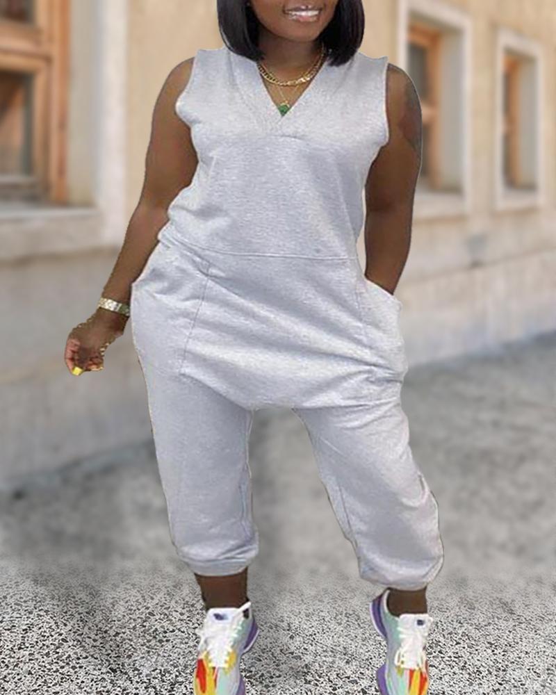 Plus Size V-Neck Pocket Design Sleeveless Jumpsuit