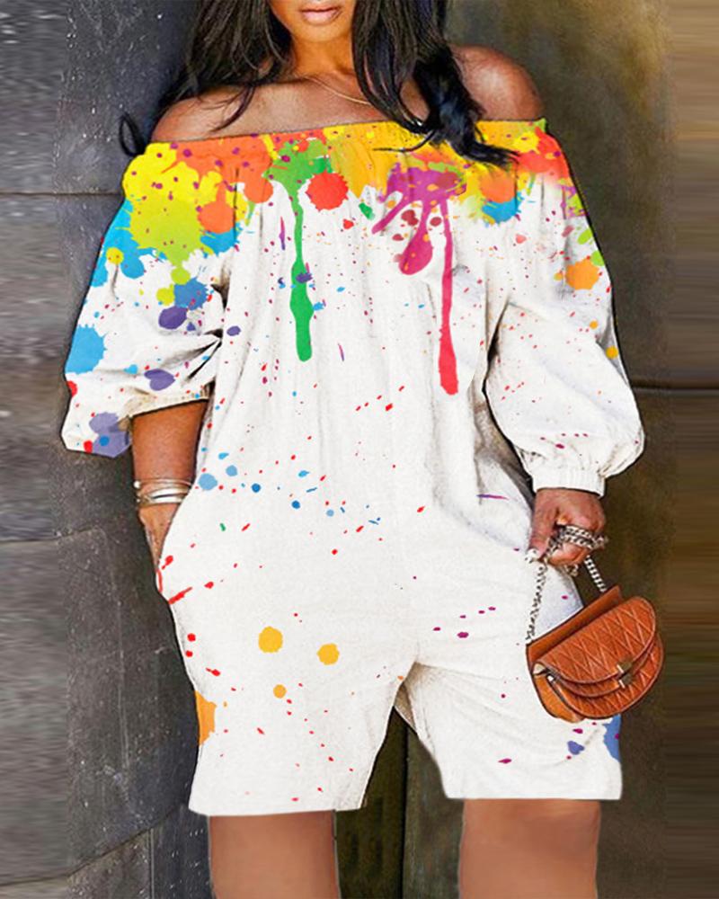 Plus Size Tie Dye Print Off Shoulder Casual Romper