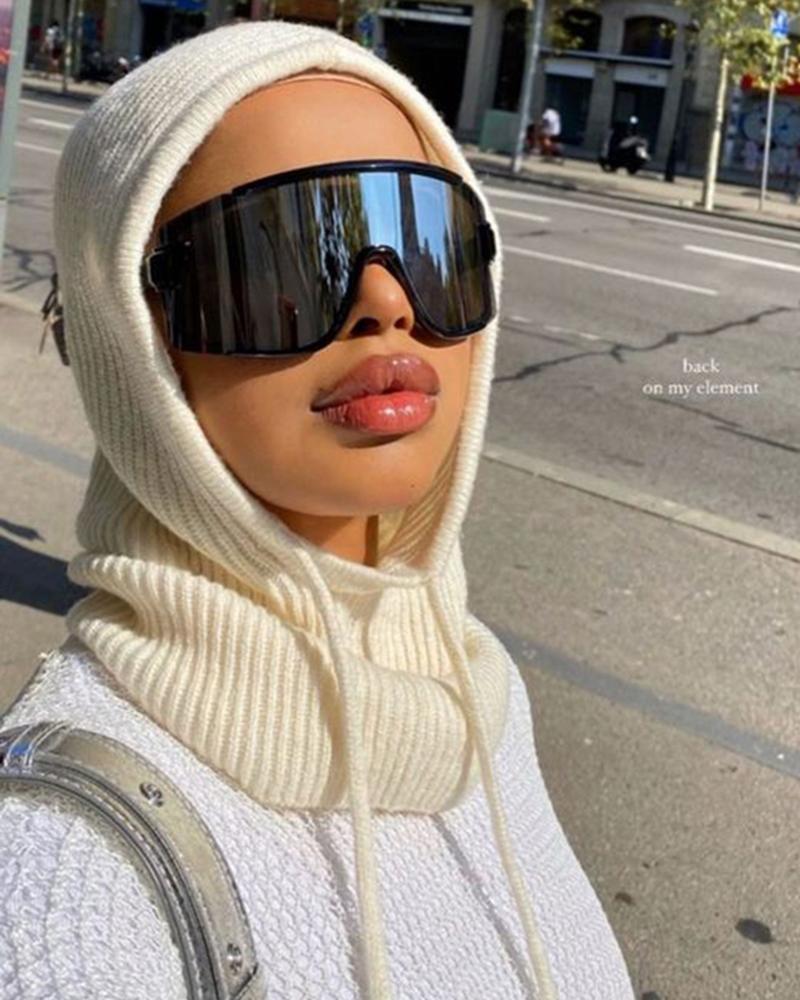 Drawstring One-Piece Scarf Mask Knit Bennie Hat