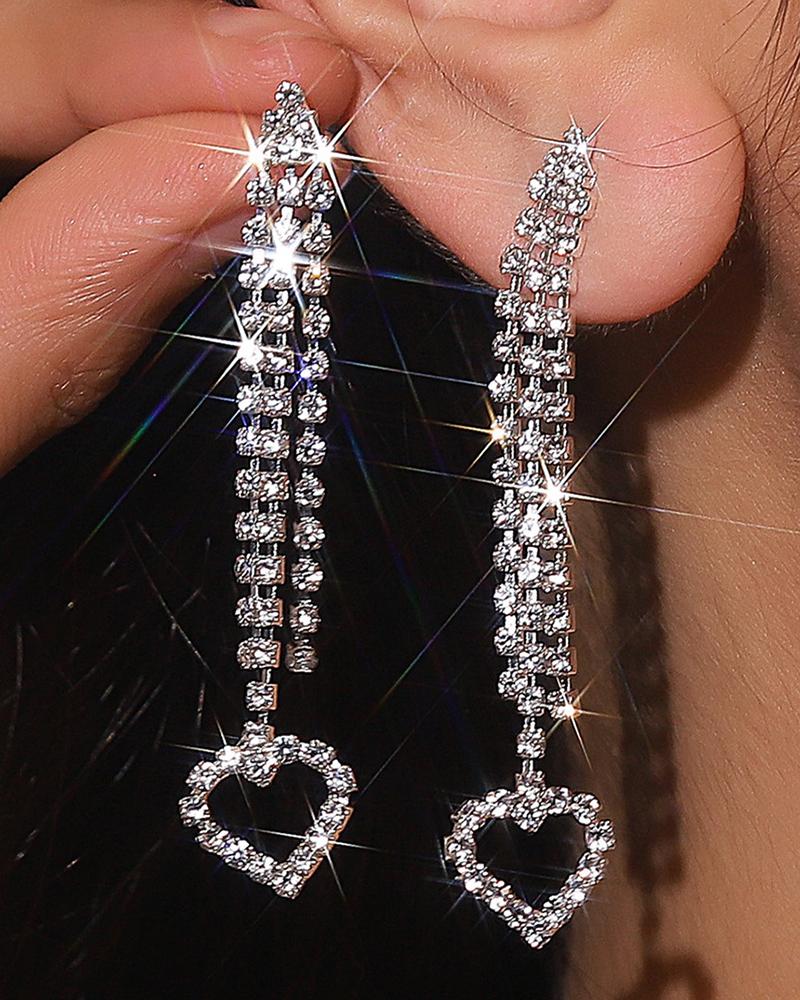 Style:Chic,Glamorous Type:Drop Earrings Material:Rhinestone Pattern Type:Heart Occasion:Party,Evening Package Include:1Pair Earrings