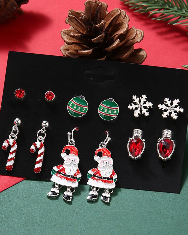 Style:Chic Type:Earrings Material:Alloy Pattern Type:Christmas Occasion:Christmas Package Include:6Pairs Earrings Set
