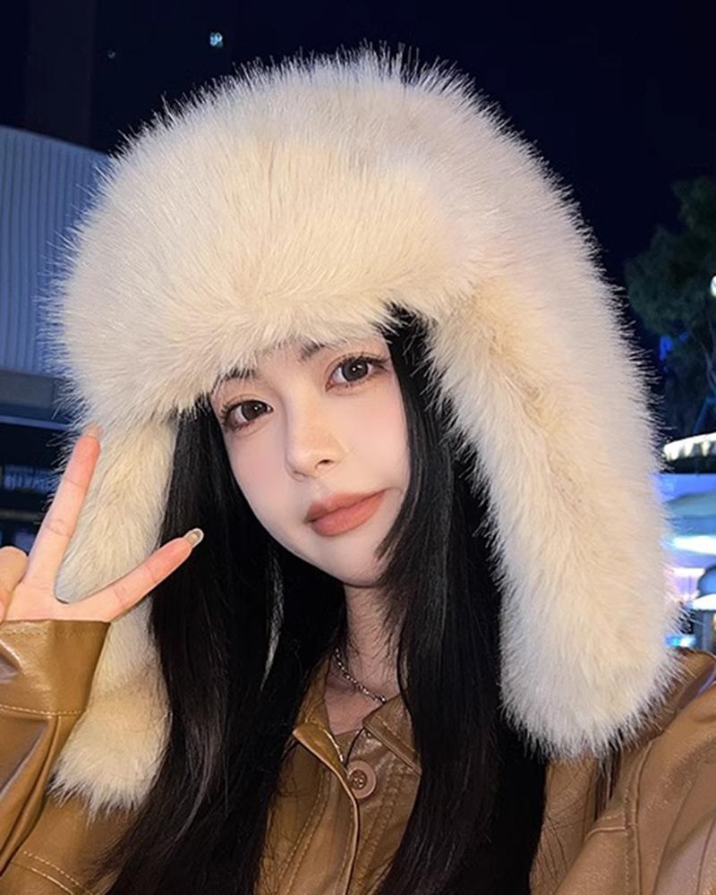 1pc Embroidery Cute Bear Fluffy Beanie Hat Scarf Mask Neck Warmer Set Drawstring Warm Hooded Winter Balaclava Pullover Hats