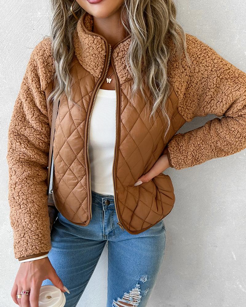 Zipper Design Patchwork Teddy Puffer Coat