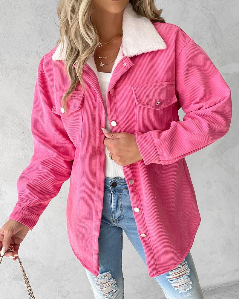 Pocket Design Fleece Lined Corduroy Shacket