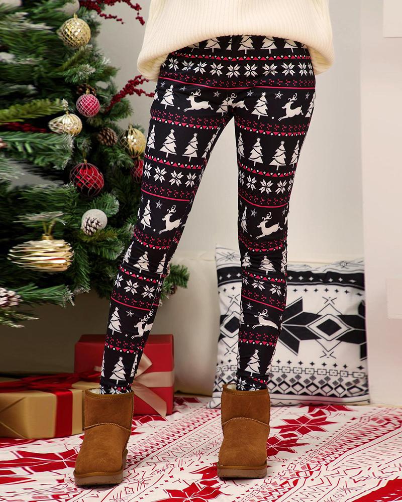 Christmas Snowman / Tree / Moose / Snowflake Print Skinny Pants
