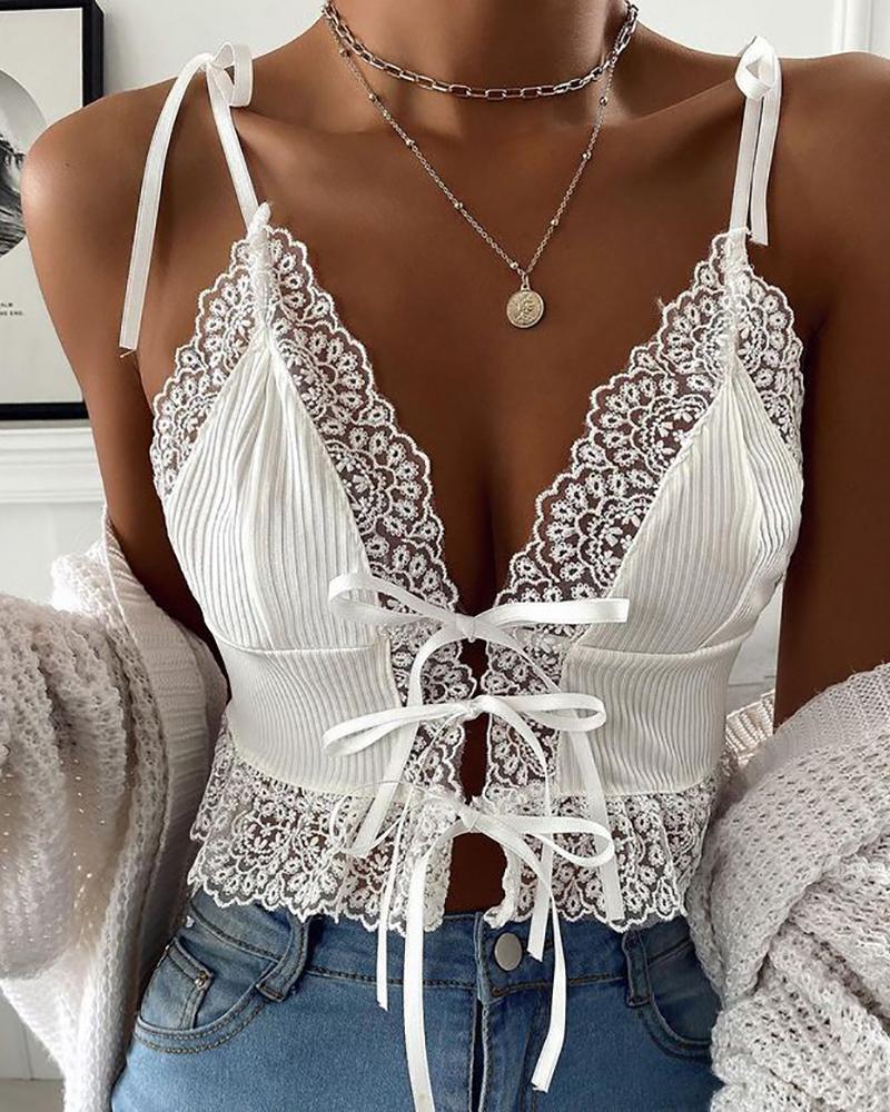 Style:Sexy Type:Top Material:Polyester Neckline:V neck Sleeve Style:Sleeveless Length:Regular Pattern Type:Plain Decoration:Lace Fit Type:Regular Occasion:Daily Package Include:1*Top