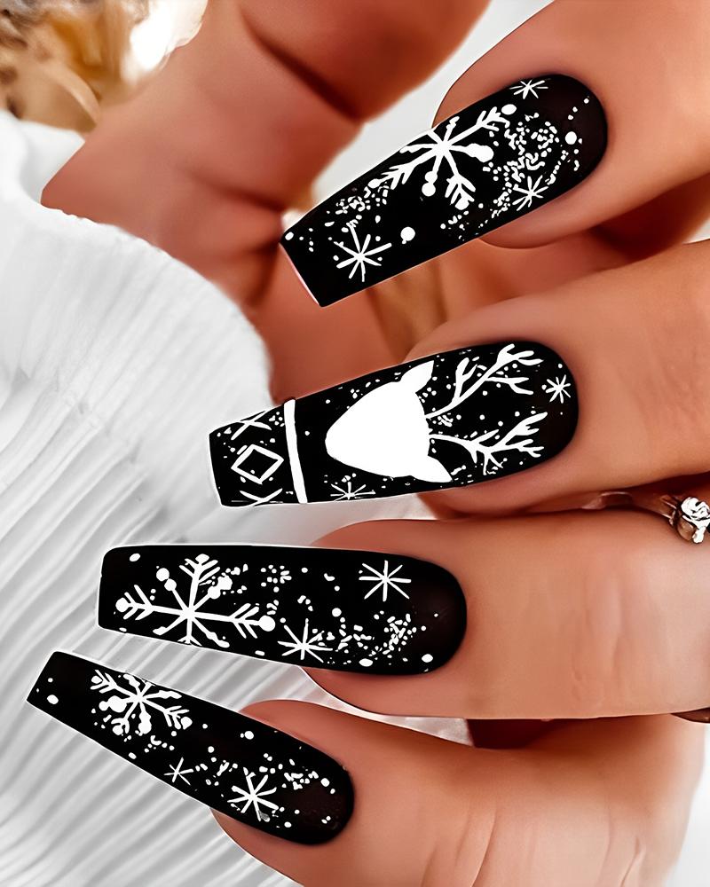 24pcs Christmas Reindeer Snowflake Design Matte Press-on Coffin False Nails Set