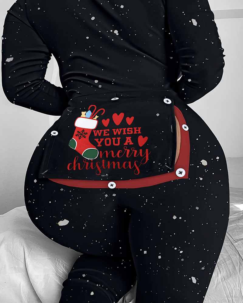 Christmas Slogan Graphic Print Functional Buttoned Flap Adult Onesie