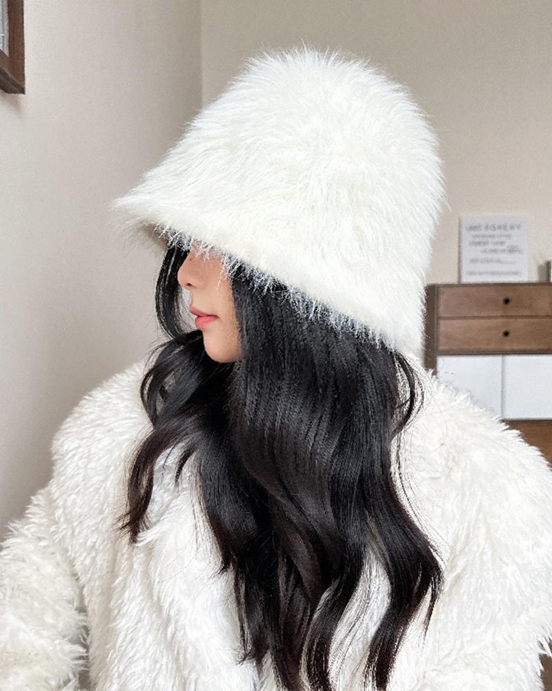 Faux Fur Fluffy Wram Bucket Hat