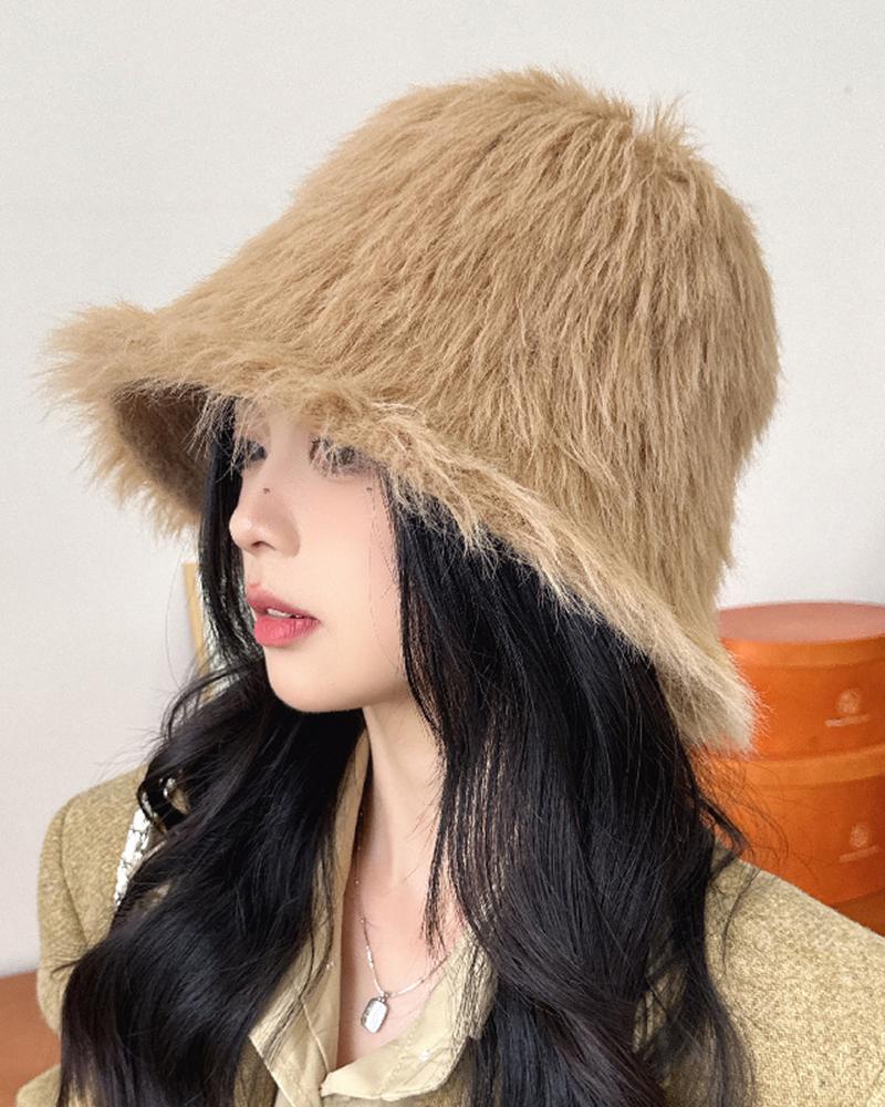 Faux Fur Fluffy Wram Bucket Hat