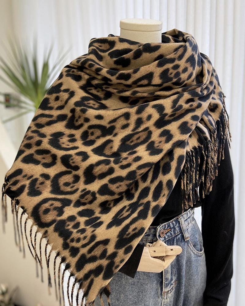 Leopard Tassel Design Thermal Scarf