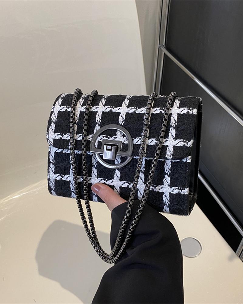 Plaid Tweed Chain Strap Crossbody Bag