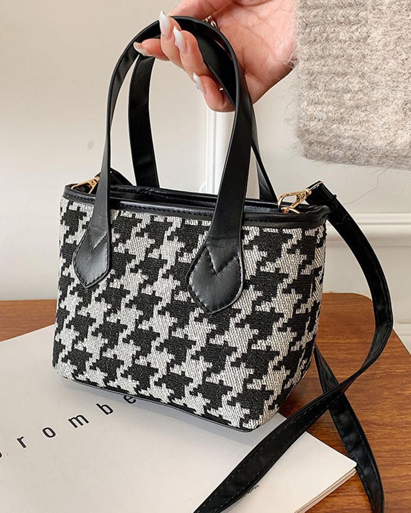 Houndstooth Zipper Design Satchel Bag