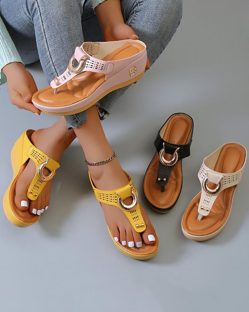Hollow Out Toe Post Beach Wedge Flip Flops