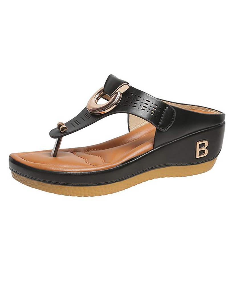 Hollow Out Toe Post Beach Wedge Flip Flops