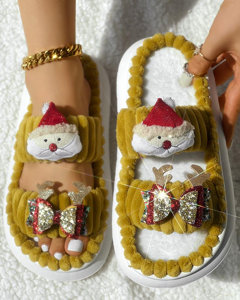 Style:Chic Type:Slippers Pattern Type:Cartoon,Christmas Occasion:Christmas Toe:Peep Toe Heel Height:Flat Package Include:1*Slippers