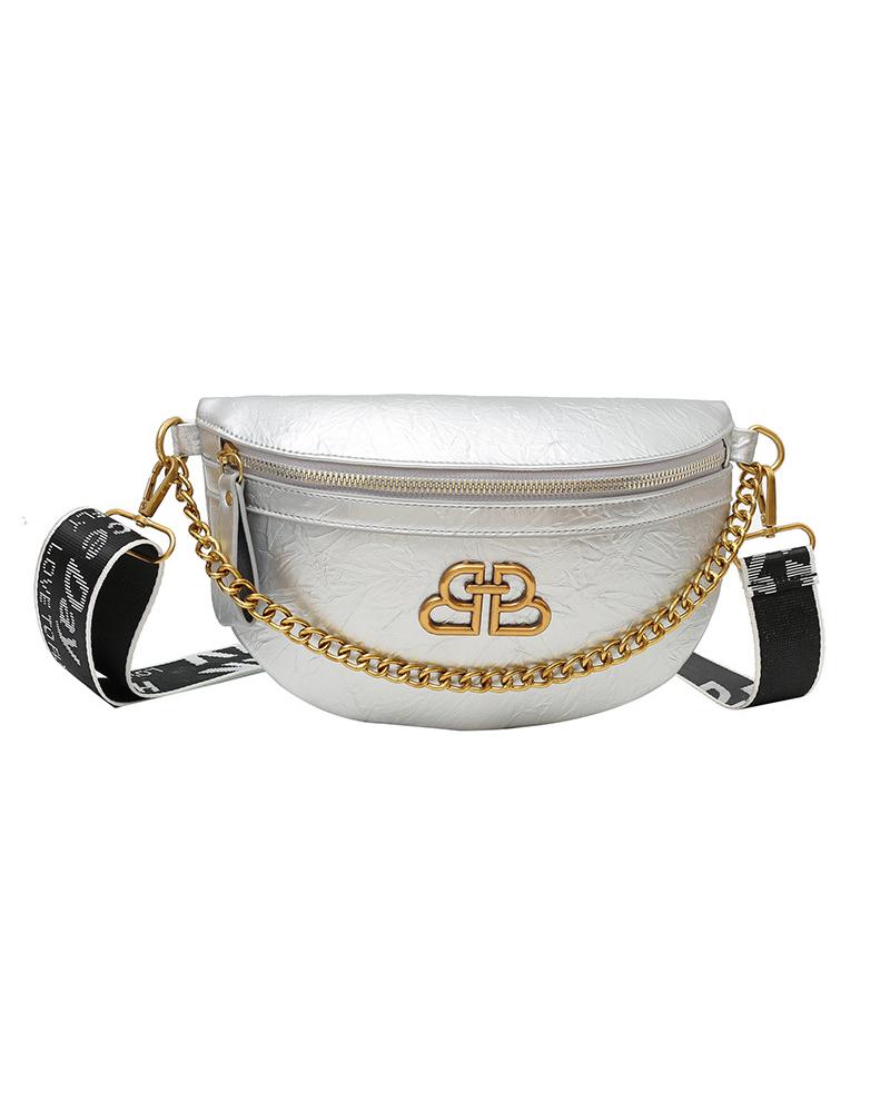 Chain Decor Crossbody Bag Zipper Design PU Fanny Pack