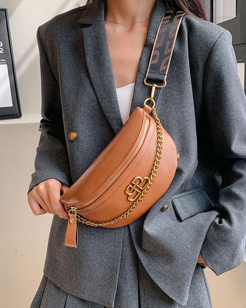Chain Decor Crossbody Bag Zipper Design PU Fanny Pack