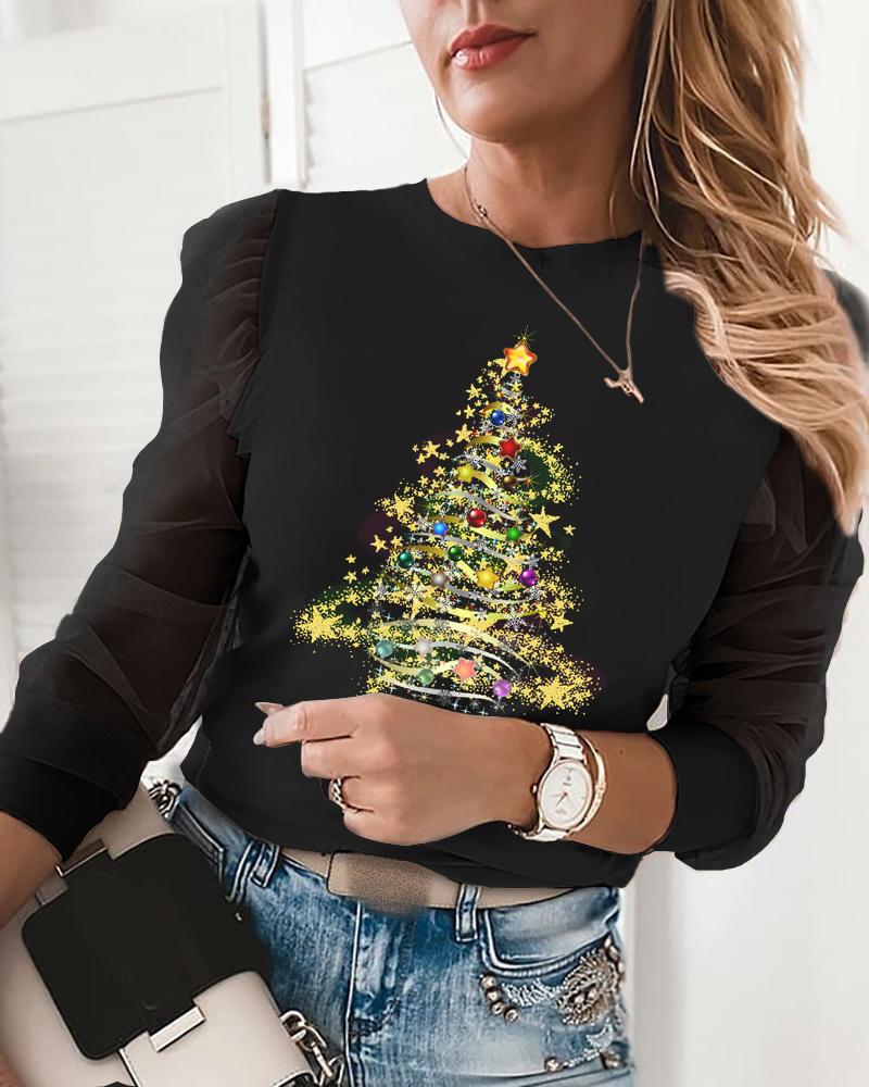Style:Chic Type:Blouses Material:95%Polyester,5%Elastane Neckline:Round Neck Sleeve Style:Long Sleeve Length:Regular Pattern Type:Christmas,Plants Decoration:Ruched,Sheer Mesh Fit Type:Regular Occasion:Christmas Package Include:1* Blouse Fabric Elasticity:Slight Stretch Sheer:Semi-Sheer Care Instructions:Hand wash, do not dry clean