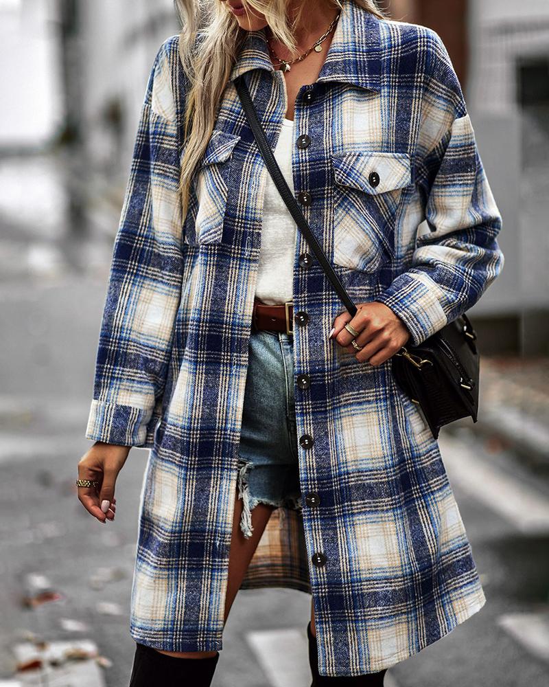 Plaid Print Pocket Design Longline Shacket