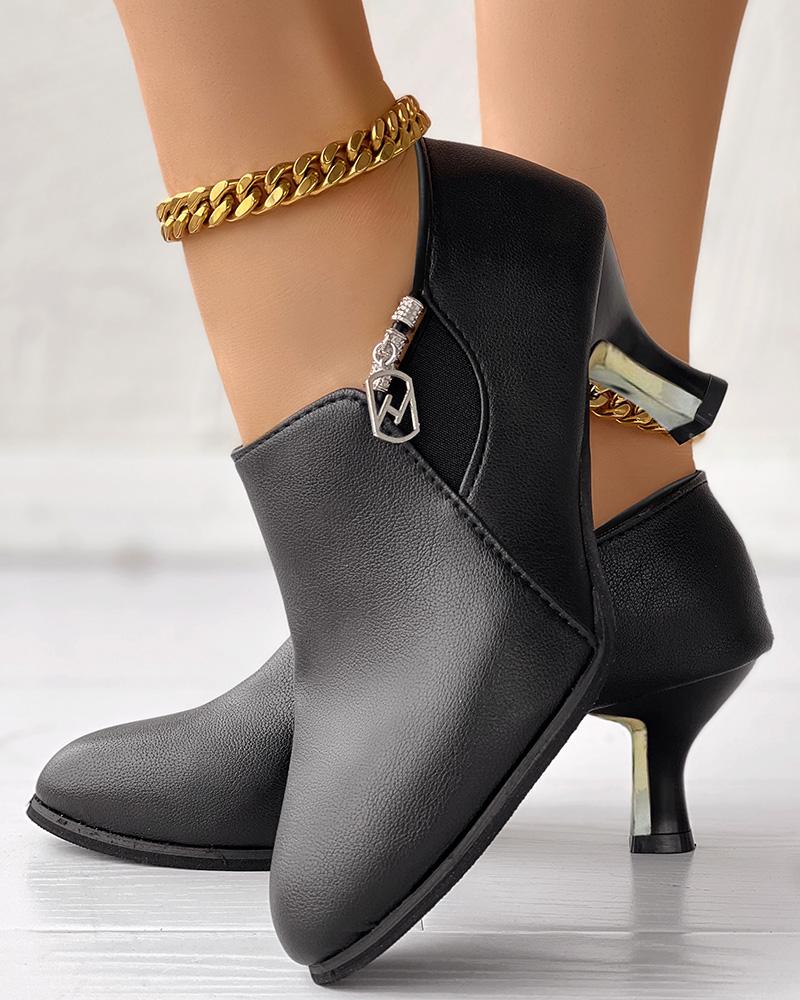 Side Zipper Pyramid Heel Ankle Boots
