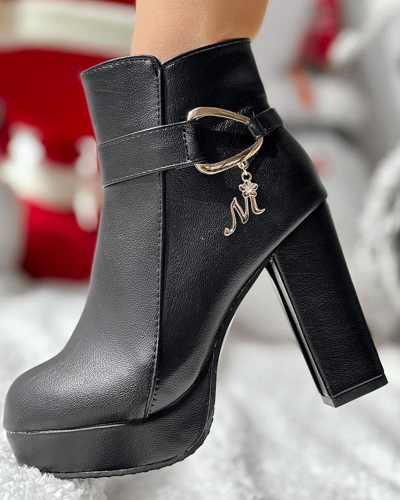 Chunky Heel Platform Lined Ankle Boots