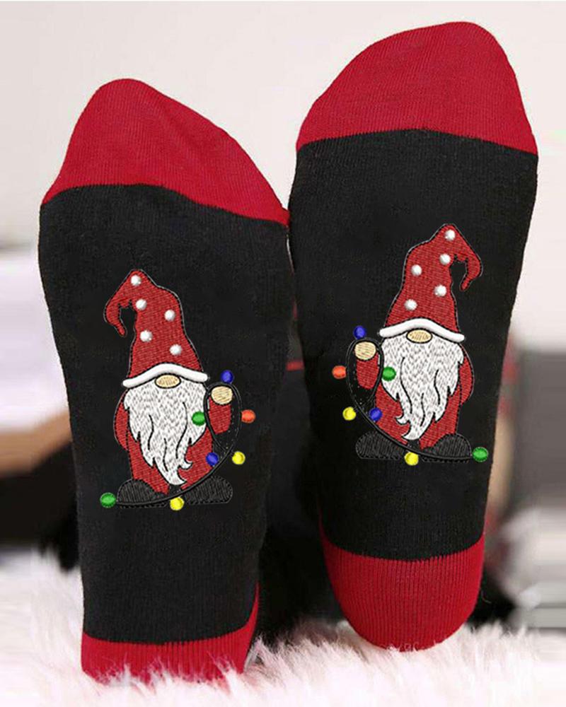 1Pair Christmas Cartoon Santa Gnomes Print Colorblock Crew Socks