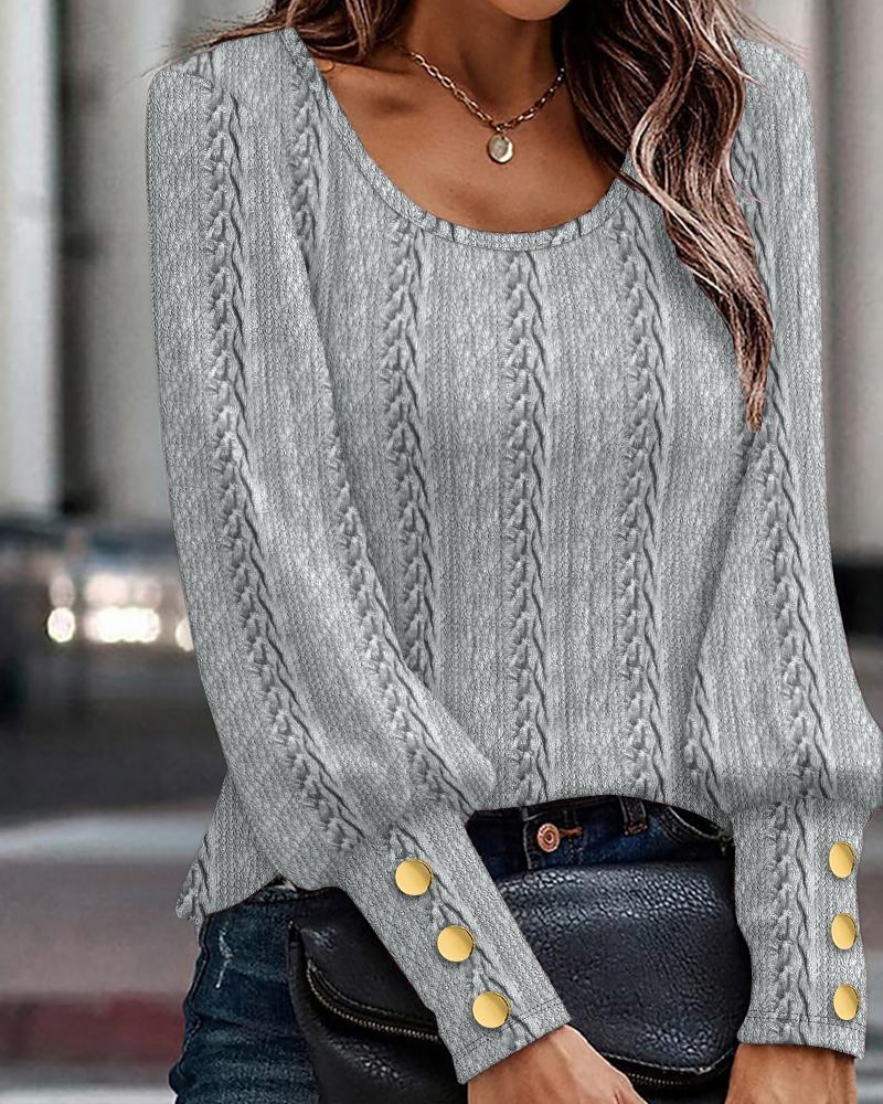 Button Decor Cable Textured Gigot Sleeve Top