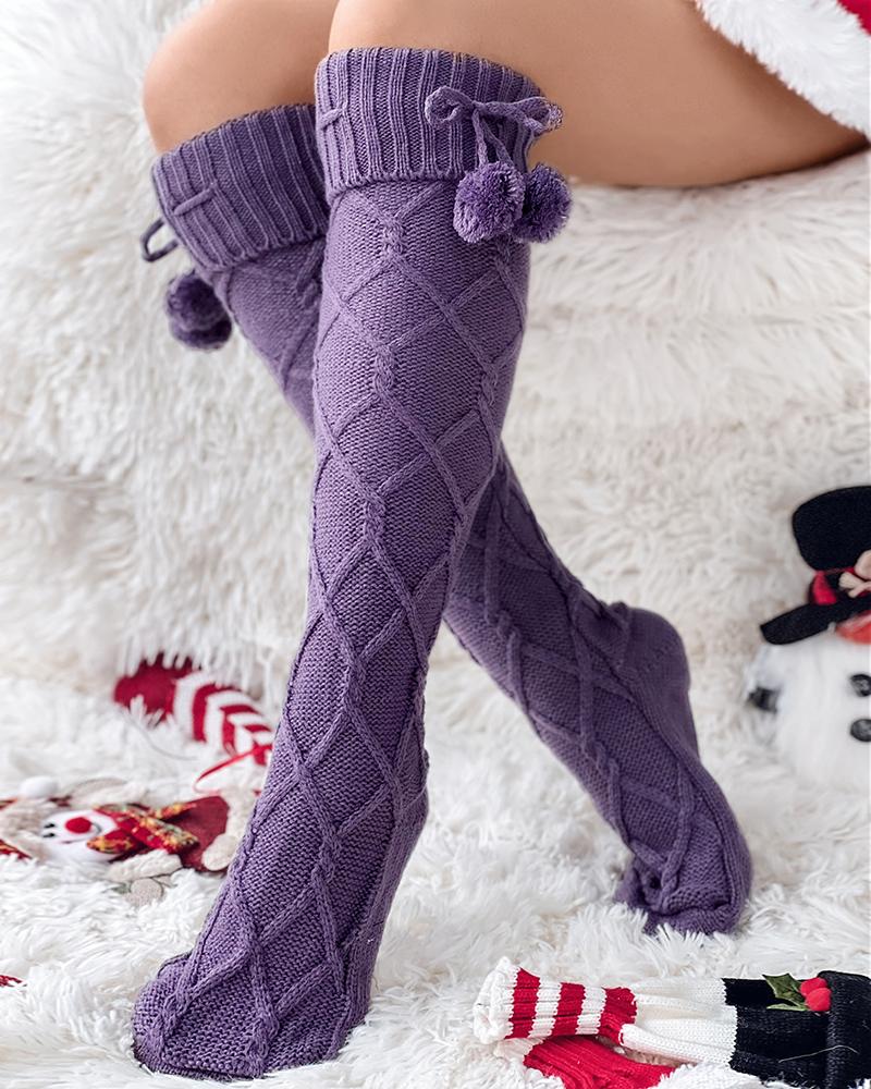 1Pair Braided Bowknot Decor Skinny Long Socks