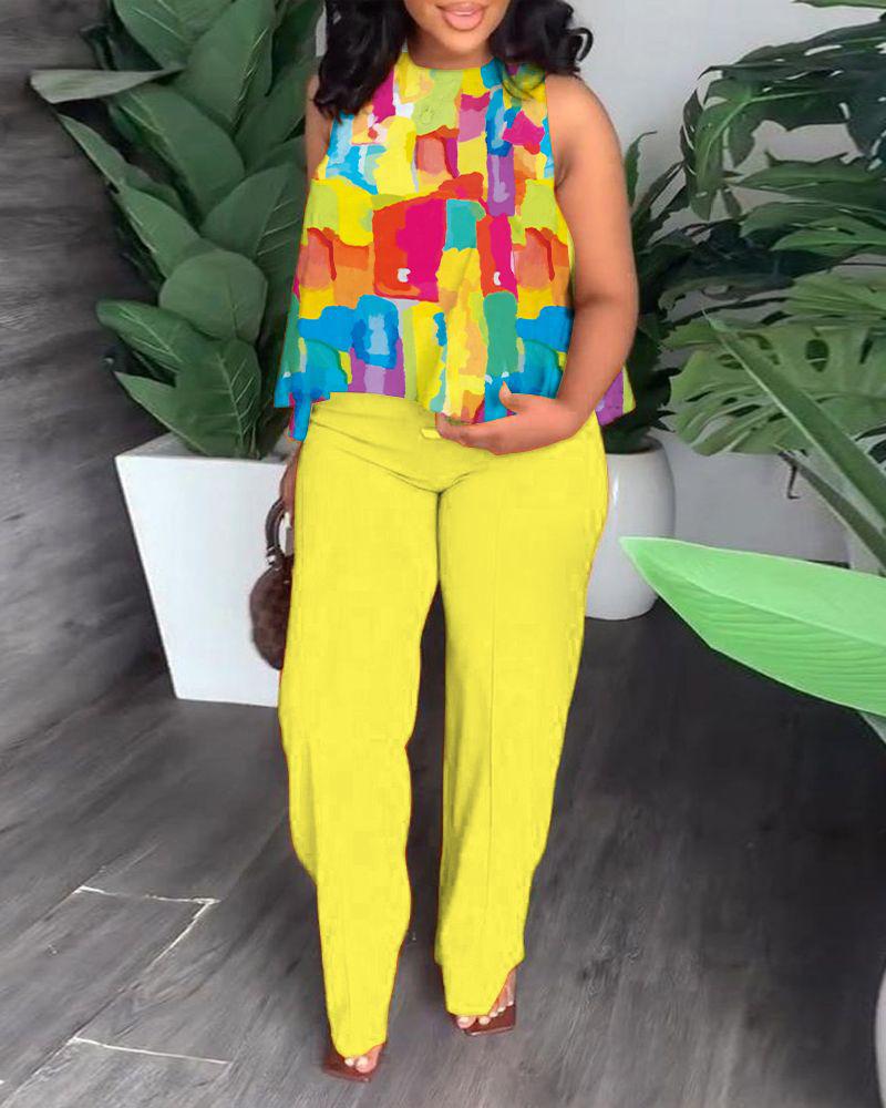 Plus Size Melting Colors All Over Print Tank Top & Straight Leg Pants Set
