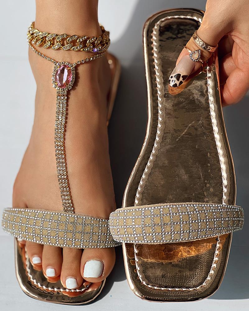 Rhinestone Plaid Pattern Thin Strap Slippers
