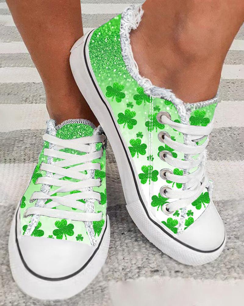 St. Patrick's Day Clover Print Ombre Fringe Hem Canvas Sneakers
