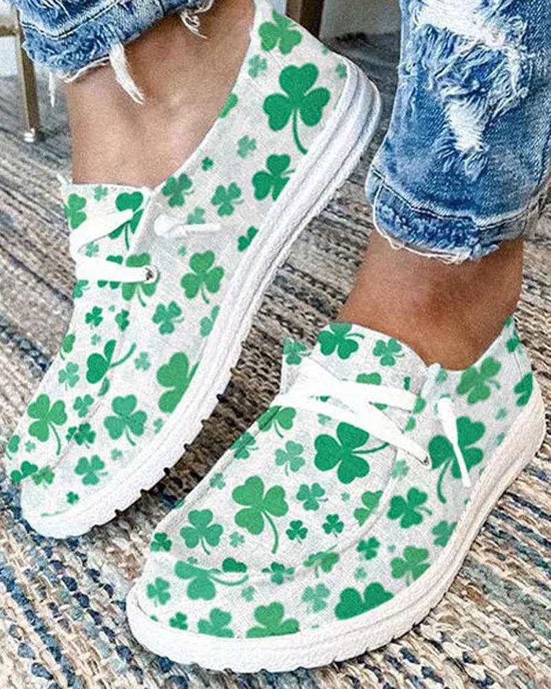St. Patrick's Day Clover Print Eyelet Lace-up Slip-on Loafers