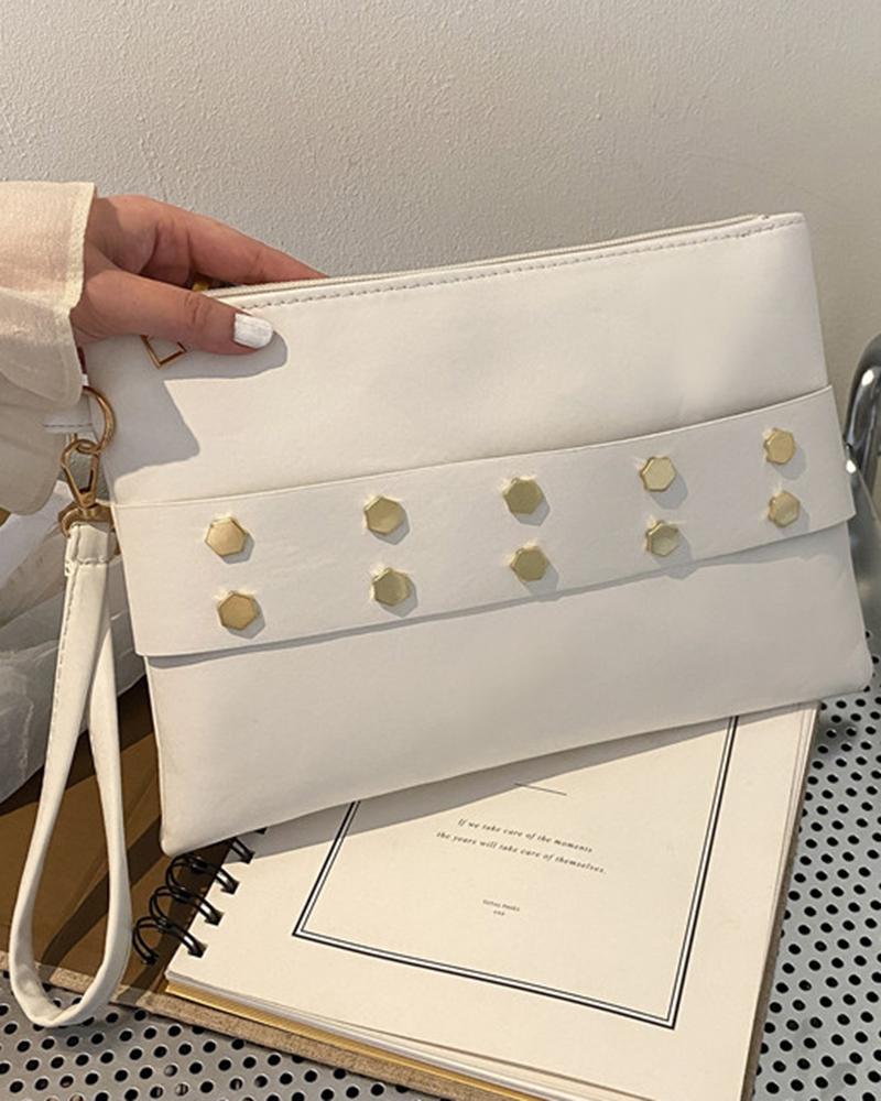Studded Zipper Design Clutch Bag