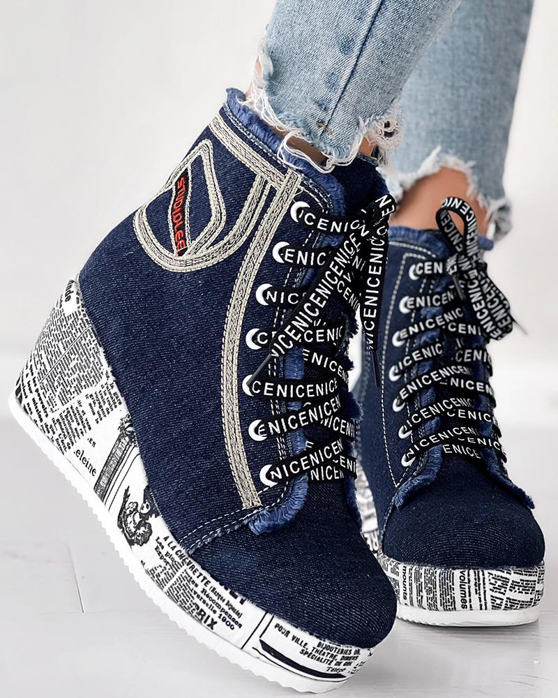 Newpaper Lace-up Platform Wedge Ankle Boots