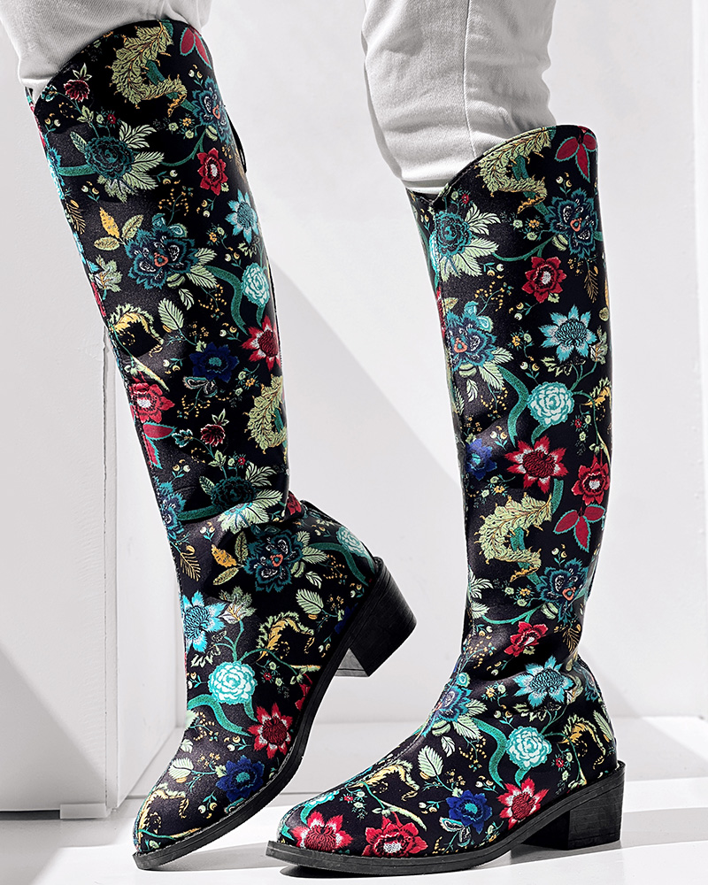 Style:Vintage Type:Boots Pattern Type:Floral Occasion:Daily Toe:Almond Toe Heel Height:Low Heel Package Include:1*Boots
