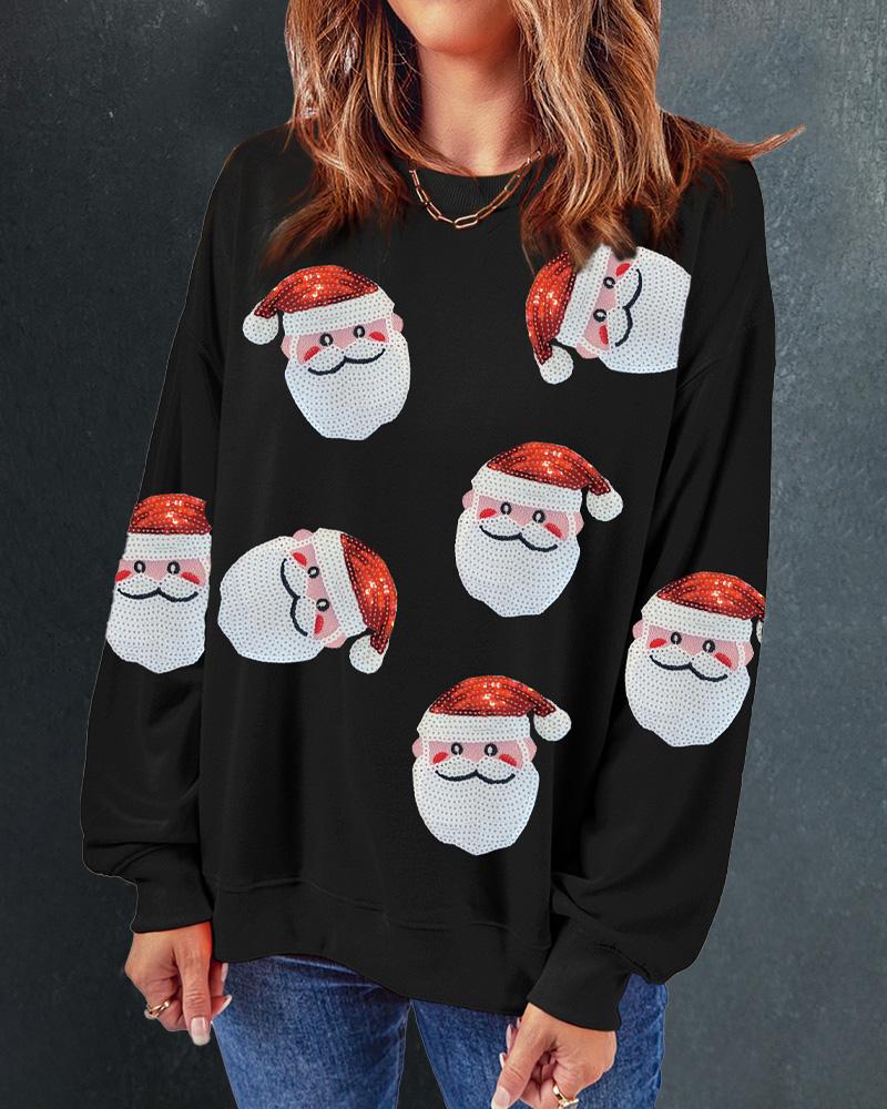 Christmas Santa Claus Pattern Contrast Sequin Sweatshirt