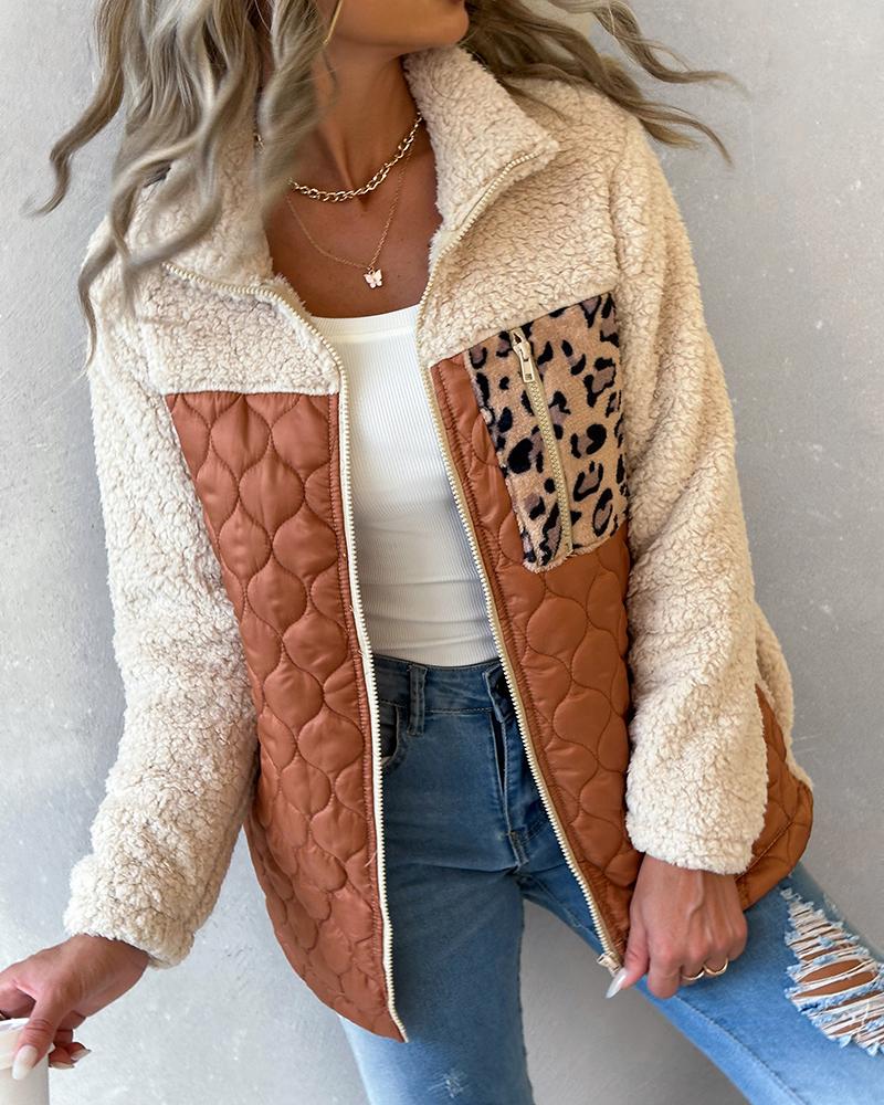 Style:Chic Type:Puffer,Teddy Material:Polyester Neckline:Turn-down Collar Sleeve Style:Long Sleeve Length:Regular Pattern Type:Colorblock,Leopard Decoration:Zipper Fit Type:Regular Occasion:Daily Package Include:1*Teddy Coat Fabric Elasticity:Slight Stretch Sheer:No Care Instructions:Machine wash, do not dry clean