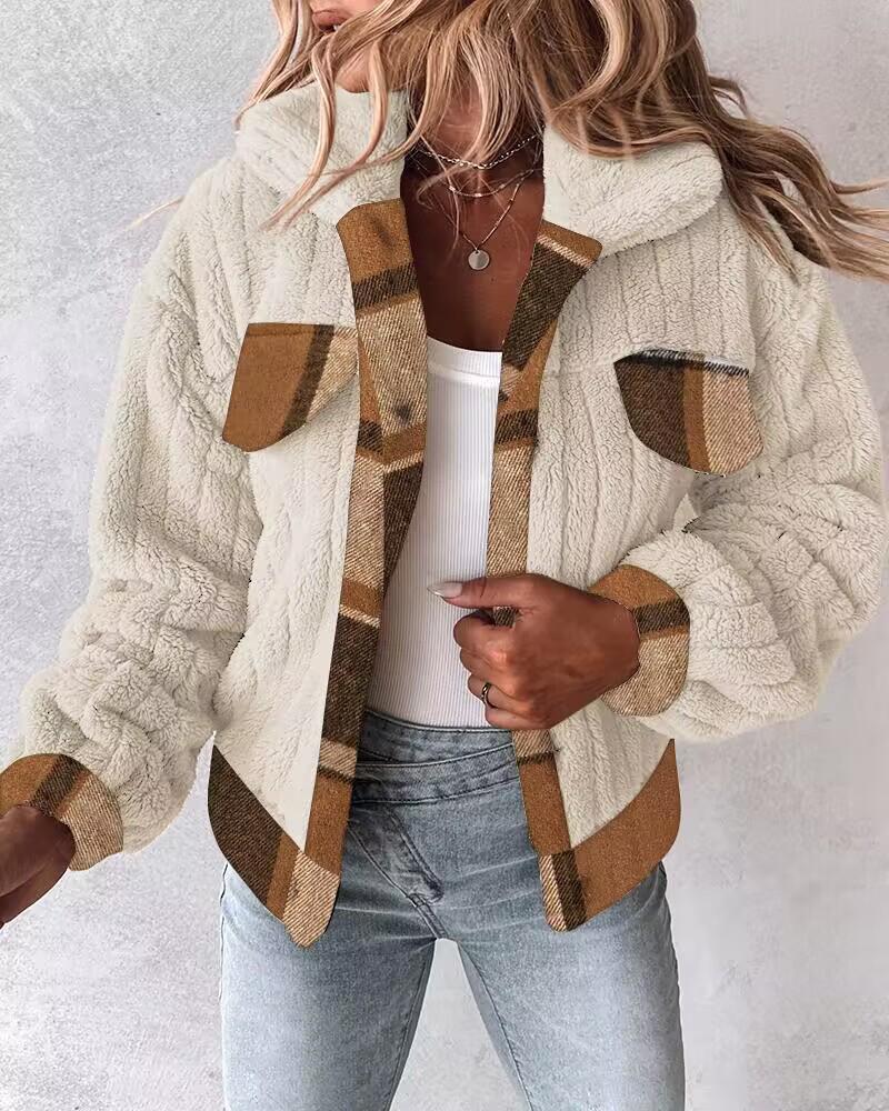 Style:Chic Type:Jacket,Teddy Material:100%Polyester Neckline:Turn-down Collar Sleeve Style:Long Sleeve Length:Regular Pattern Type:Plaid Decoration:Others Fit Type:Regular Occasion:Daily Package Include:1*Jacket Fabric Elasticity:Slight Stretch Sheer:No Care Instructions:Machine wash, do not dry clean