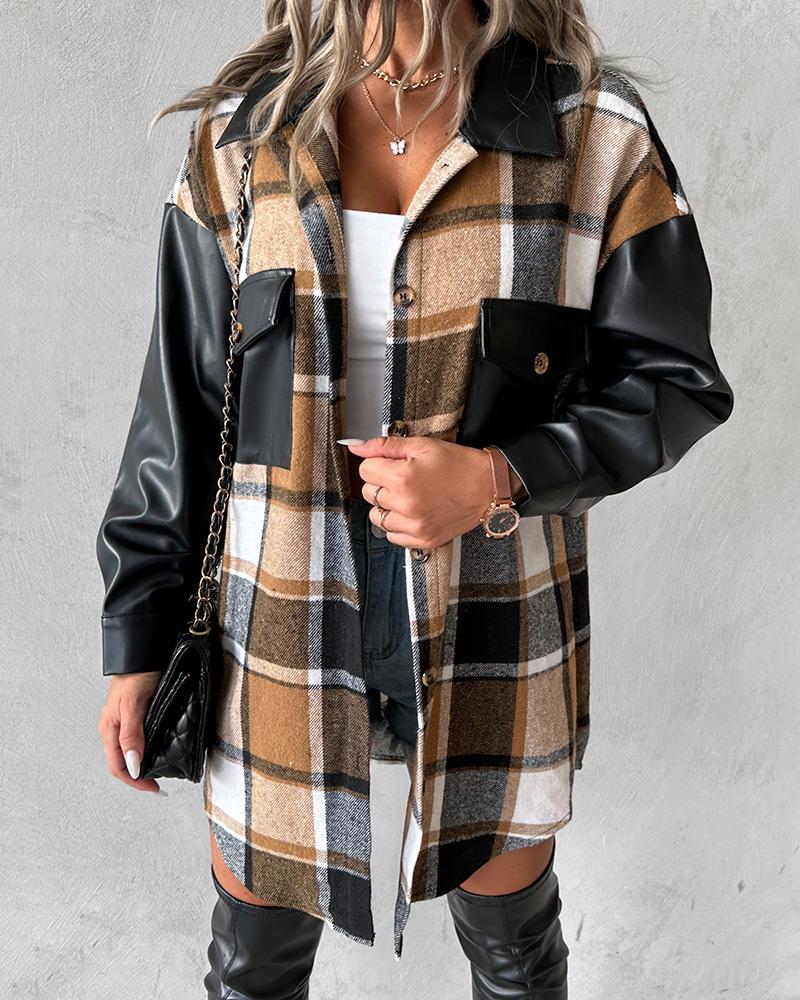 Style:Chic Type:Jacket Material:Polyester,PU Leather Neckline:Turn-down Collar Sleeve Style:Long Sleeve Length:Long Pattern Type:Plaid Decoration:Button,Pocket Fit Type:Regular Occasion:Daily Package Include:1*Jacket Fabric Elasticity:Slight Stretch Sheer:No Care Instructions:Hand wash, do not dry clean