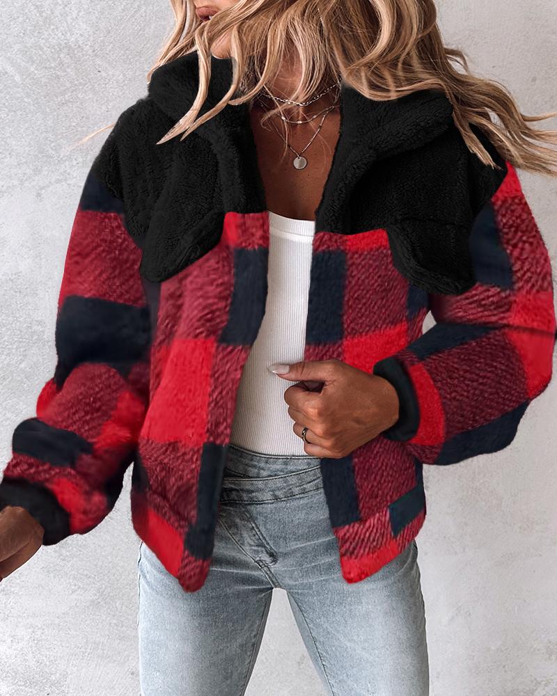 Style:Chic Type:Jacket,Teddy Material:Polyester Neckline:Turn-down Collar Sleeve Style:Long Sleeve Length:Regular Pattern Type:Plaid Decoration:Others Fit Type:Regular Occasion:Daily Package Include:1*Jacket Fabric Elasticity:Non-Stretch Sheer:No Care Instructions:Machine wash, do not dry clean