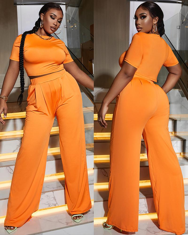 Style:Casual,Chic Type:Pants Sets Material:97%Polyester,3%Spandex Neckline:O-neck Sleeve Style:Short Sleeve Length:Long Pattern Type:Plain Decoration:Tied Detail Fit Type:Regular Occasion:Daily Package Include:Pants Sets