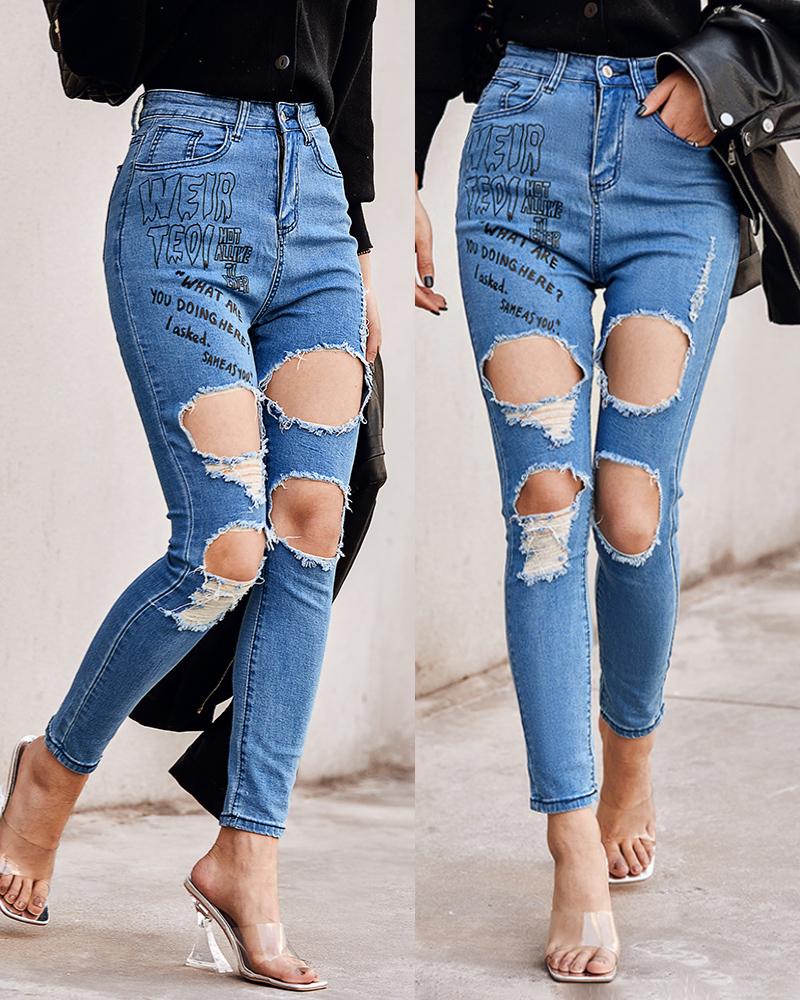 Style:Casual,Denim Type:Jeans,Skinny Pants,High Waist Material:Denim Length:Long Pattern Type:Letter Decoration:Button,Cutout,Pocket,Raw Hem Fit Type:Skinny Occasion:Daily Package Include:1*Jeans