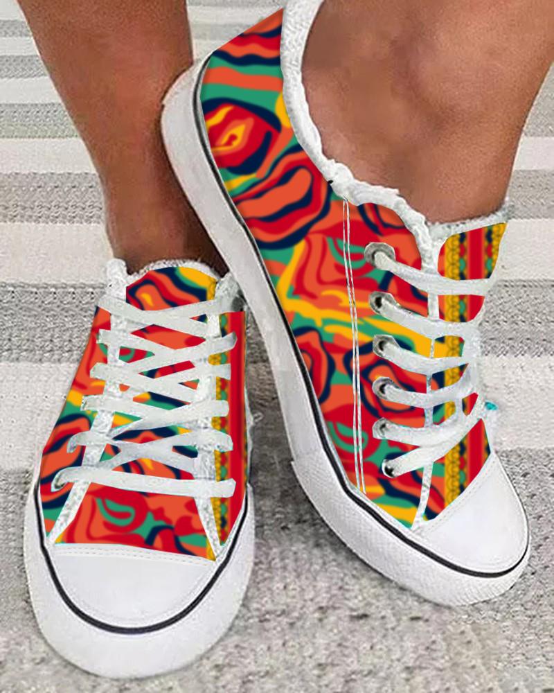 Halloween Pumpkin Print Raw Hem Lace-up Sneakers