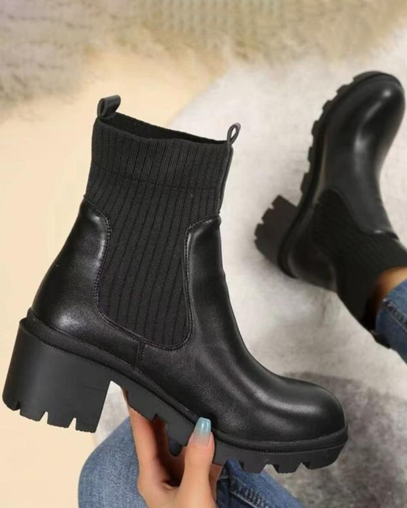 Style:Chic Type:Boots Pattern Type:Contrast Paneled Occasion:Daily Toe:Square Toe Heel Height:Low Heel Package Include:1*Boots