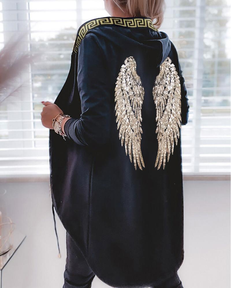 Sequin Wings Pattern Zipper Design Hooded Coat